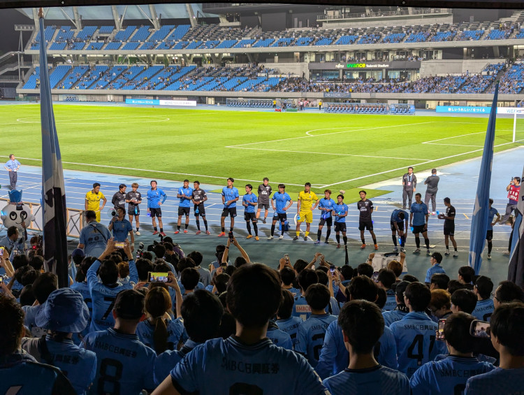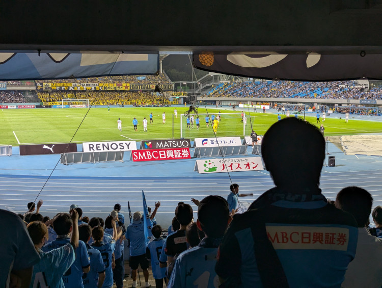 J’ai décidé de voir Kawasaki Frontale - Kashiwa Reysol, malgré son stade avec une piste d’athlétisme, car les deux équipes étaient d’un bien meilleur niveau. Tandis que Yokohama FC est le second club de Yokohama, d’un niveau faible et peu soutenu.