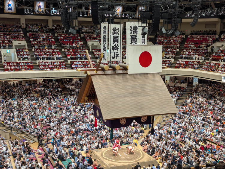 The Grand Sumo Tournament, l'un des 6 plus grands tournois de sumo de l'année. Les billets s'achètent sur le site https://sumo.pia.jp/en/ et vous retrouvez toutes les infos très clairement. Dans mon cas, c'était sold-out immédiatement. Je n'ai pas réussi à avoir mon premier choix donc j'ai pris la veille. C'était un beau évènement pour découvrir le sumo. Il faut savoir que ça se passe sur toute une journée, la matinée étant des combats de sumo des divisions inférieures et la foule ne s'y presse donc pas tellement. L'atmosphère ne devient intéressante qu'au cours de l'après-midi.