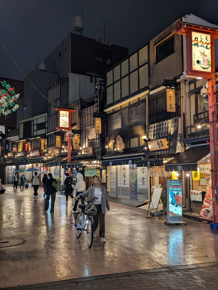 Le soir, on retrouve la nightlife traditionnelle des villes japonaises (clubs, etc) mais à l’écart du tourisme (j’ai pas croisé un seul non japonais) et dans un environnement quand même plus attirant, plus “humain”. Je me suis baladé plus longtemps que je le prévoyais dans le quartier, repassant plusieurs fois aux mêmes endroits car je m’y plaisais bien. Et c’est parfois en allant dans des quartiers moins populaires qu’on tombe plus facilement sur des bons commerces pour les locaux : acheter en fin de soirée son repas en promo directement chez un vendeur de sushis, c’est bien mieux que finir au 7Eleven. Donc voilà, un petit stop avec l’idée d’y manger quelque part, c’est suffisant comme justification pour s’y rendre et vaincre la monotonie de la supérette de fin de soirée.