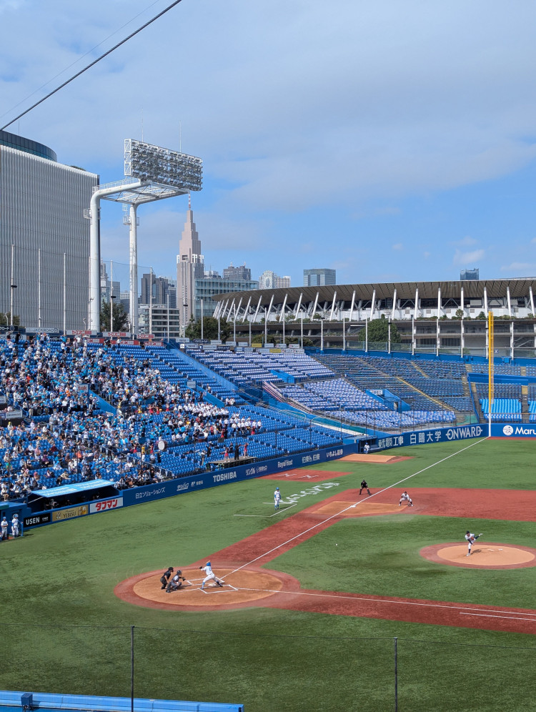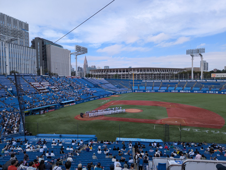 Je me suis rendu deux fois à des matchs de Tokyo Big6 Baseball, la plus vieille compétition de baseball du Japon (100 ans) qui regroupe les 6 principales universités de Tokyo. Ça se déroule au célèbre Meiji Jingu Stadium, un stade à peine plus jeune (1926) et donc l’un des plus vieux stades de baseball du pays. Si vous ne pouvez pas y voir directement un match des Yakult Swallows, c’est une bonne alternative. Je dirais même plus, quoi qu’il arrive c’est à faire ! Un lieu et une compétition qui sont chargés d’Histoire.