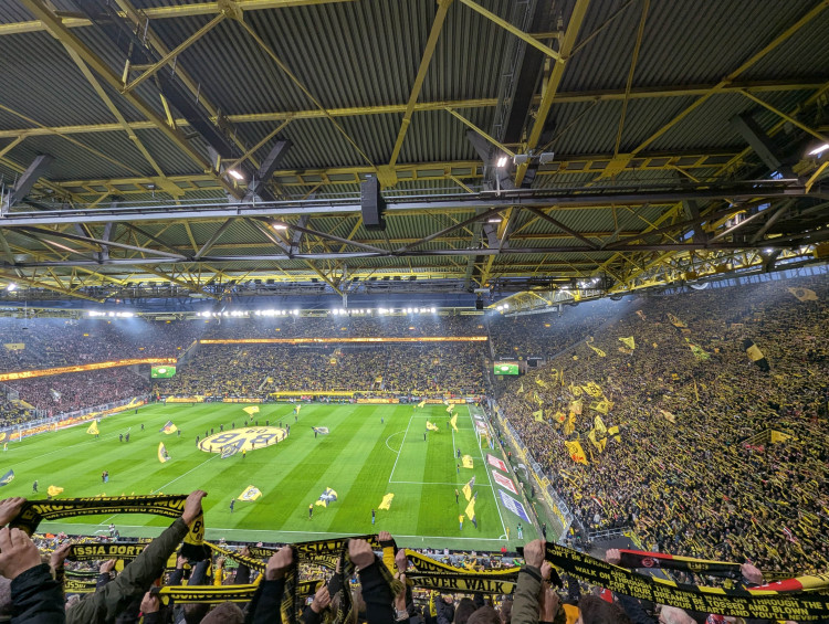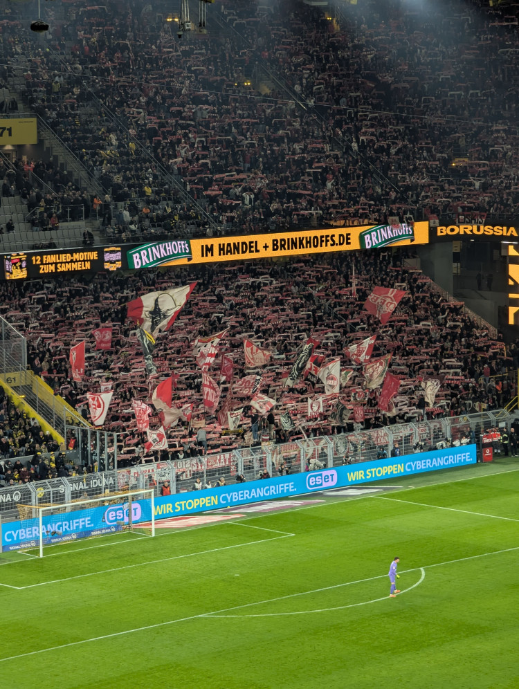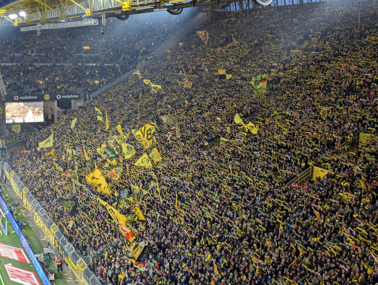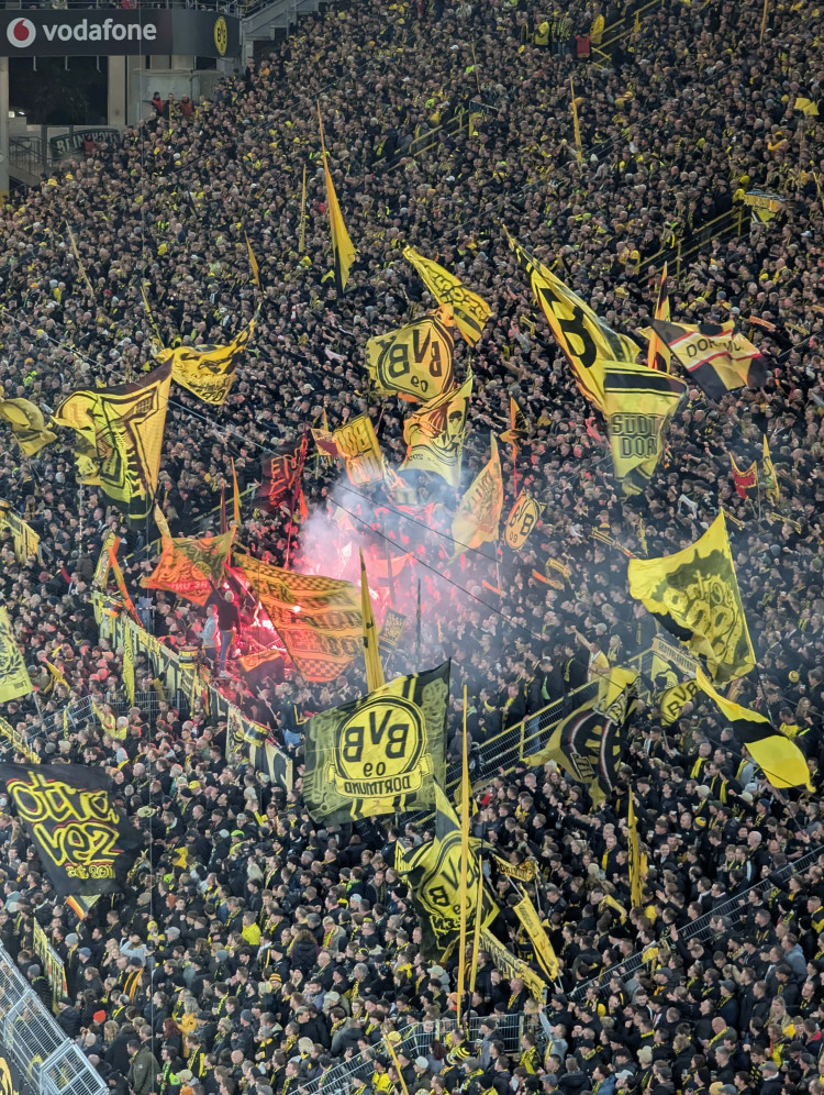 C’est tout simplement frappant avec le célèbre “mur jaune”. Certes, les couleurs et écharpes portées rendent cette immense tribune très belle. Mais en proportion, il y’a très peu de supporters actifs. C’est même compliqué de trouver un point de comparaison aussi faible dans un autre stade. La Südtribüne a beau avoir une capacité de 24 000 places, soit quasi la capacité d’un bon stade à elle seule, il n’y a pas plus d’ultras que dans la majorité des stades allemands que j’ai pu faire. A l'œil, on peut compter en petit millier le nombre de supporters “actifs” soit 1/24ème de la tribune. Le rendu global est donc tout à fait anecdotique.