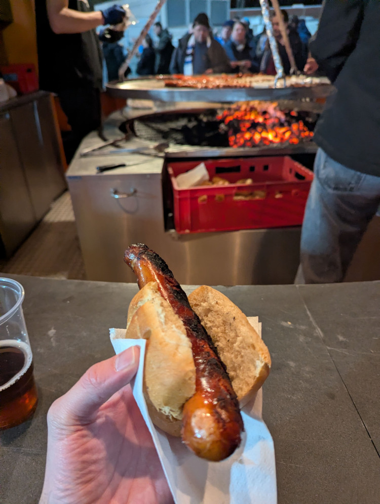 On pouvait justement rentrer avec sa boisson dans le stade, contrairement au match féminin où j’y faisais justement le désagréable constat. Pour manger, autant profiter de la convivialité des stands du stade où les prix sont ok. Même si je ne suis pas le premier fan de bratwurst ou currywurst, là je trouve qu'on en avait un peu plus pour notre argent que dans mes précédentes expériences.