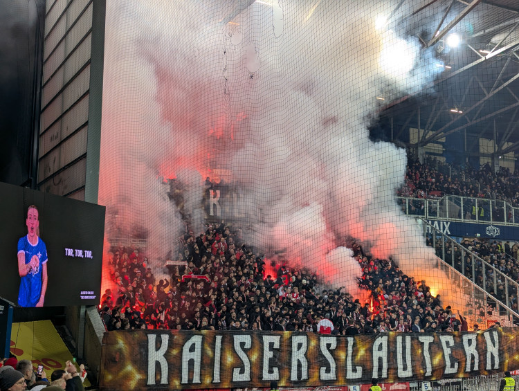 Les fans de Kaiserslautern occupaient donc une bonne partie de notre virage, en plus du parcage se trouvant dans le coin de la latérale. Bonne ambiance assurée en étant placé aussi proche d’eux. Même si, je dirais toujours que les ambiances allemandes ont tendance à ronronner. Quand j’en ai vu quinze minutes, j’ai tout vu.