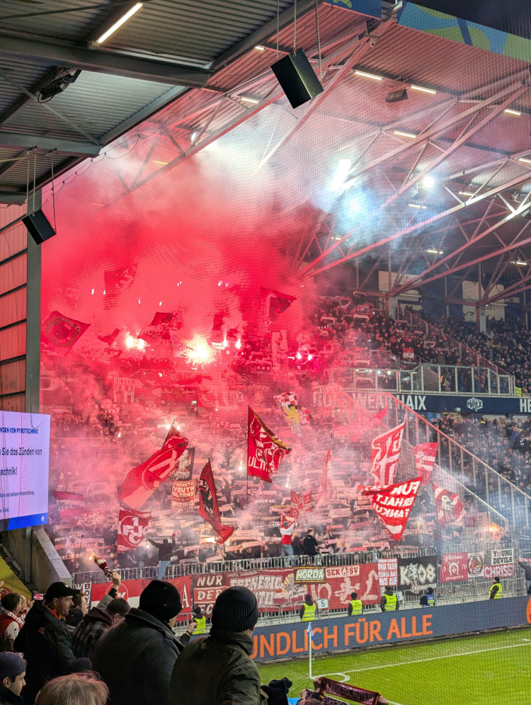 Et pourtant… l’ambiance dans le reste du stade est beaucoup plus terne. Les supporters ne poussent clairement pas derrière l’équipe et il y’a clairement de la retenue dans leur effusion de joie sur les buts. Difficile en effet d’imaginer ne pas voir un stade s'enflammer un samedi soir, lorsque tu es leader de 2. Bundesliga. Et pourtant, c’était le cas ce soir.