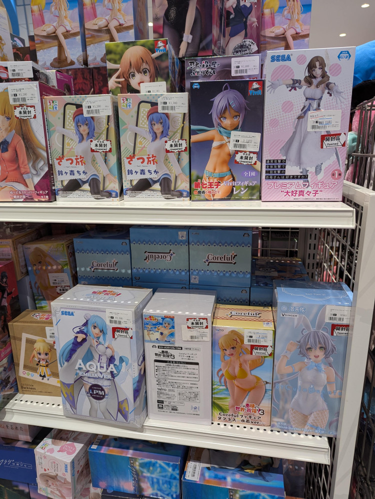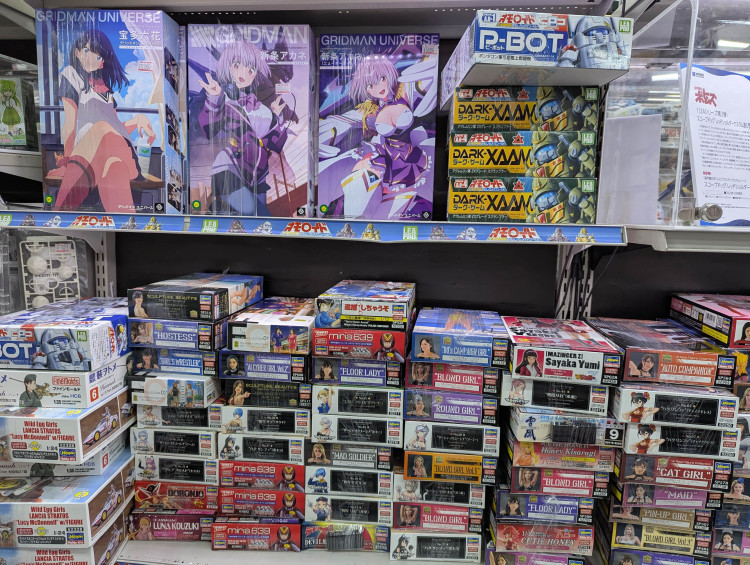 Vous mettez les pieds dans un Book Off (plus grosse chaîne de magasins japonais de vente d’occasion) et vous tombez sur d’innombrables rayons de mangas et figurines perverses, dont les "Kit de modèle en plastique scanné en 3D à l'échelle 1/20", de DVD érotiques à côté des blu-ray sur les trains : les japonais, les "densha otaku", adorent ça. Et évidemment le rayon -18 derrière des rideaux.