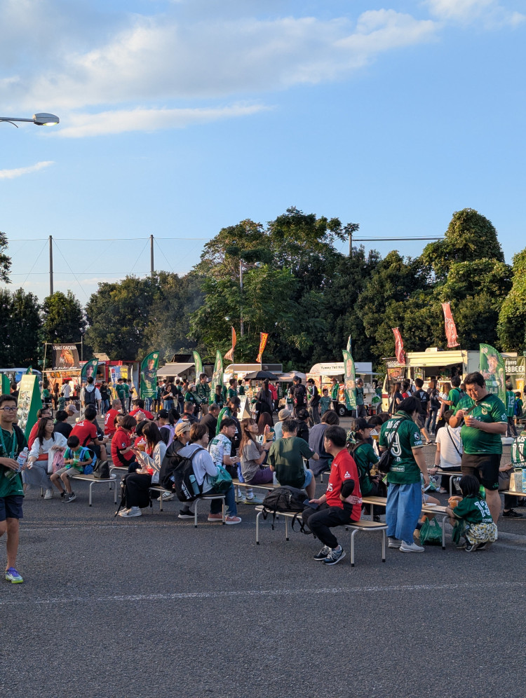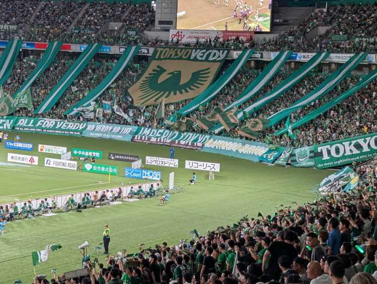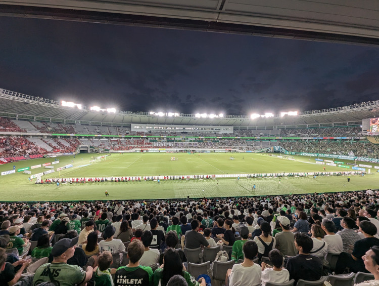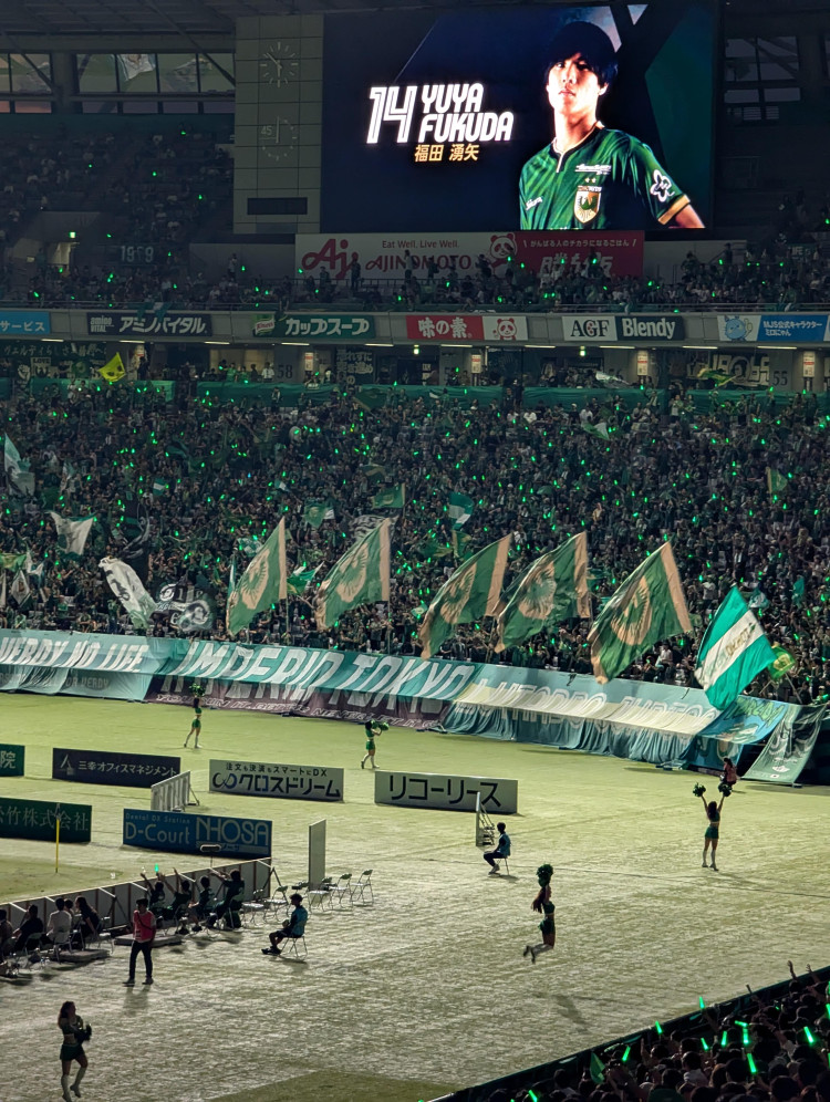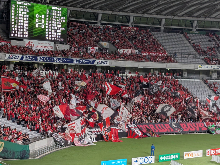 Les supporters de Tokyo Verdy et Urawa Reds se partagaient les tribunes. J’y ai retrouvé une ambiance avec les codes occidentaux habituels. Des nombreux drapeaux surtout côté Urawa, et la petite touche asiatique côté Tokyo Verdy puisque hôte avec des jeux de lumière pour utiliser des lightsticks.