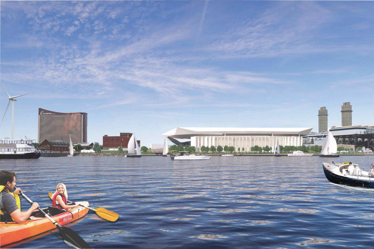 Le stade doit être situé dans une zone industrielle polluée ; le projet consistera bien sûr à nettoyer la zone et proposer un parc.